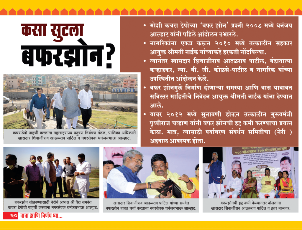 • मोशी कचरा डेपोच्या ‘बफर झोन’ प्रश्नी २००८ मध्ये धनंजय आल्हाट यांनी पहिले आंदोलन उभारले.