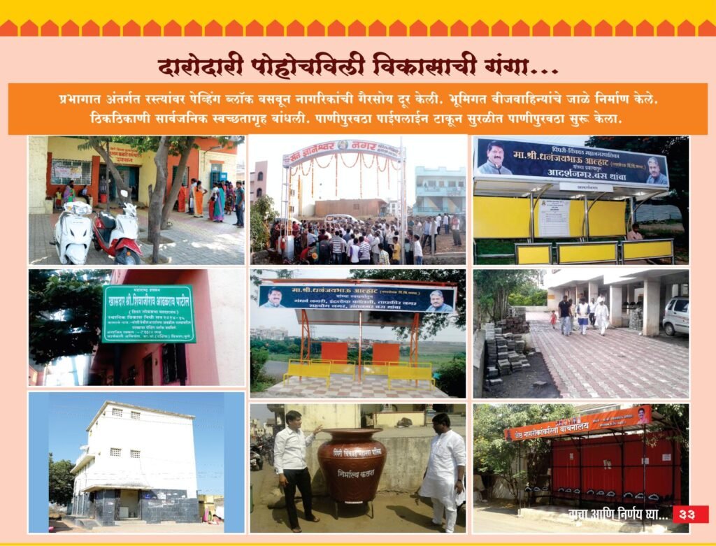 प्रभागात अंतर्गत रस्त्यांवर पेव्हिंग ब्लॉक बसवून नागरिकांची गैरसोय दूर केली. भूमिगत वीजवाहिन्यांचे जाळे निर्माण केले. ठिकठिकाणी सार्वजनिक स्वच्छतागृह बांधली. पाणीपुरवठा पाईपलाईन टाकून सुरळीत पाणीपुरवठा सुरू केला.