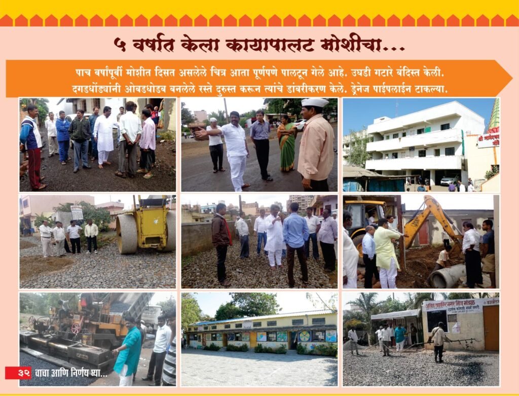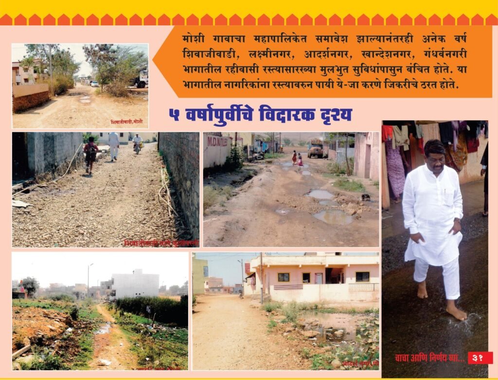 पाच वर्षापूर्वी मोशीत दिसत असलेले चित्र आता पूर्णपणे पालटून गेले आहे. उघडी गटारे बंदिस्त केली. दगडधोंड्यांनी ओबडधोडप बनलेले रस्ते दुरुस्त करून त्यांचे डांबरीकरण केले. ड्रेनेज पाईपलाईन टाकल्या. Categories: राजकीयविकासकामेसामाजिक 0 Comments Leave a Reply Cancel replyYour email address will not be published. Required fields are marked * Name * Email * Website What's on your mind? Save my name, email, and website in this browser for the next time I comment.