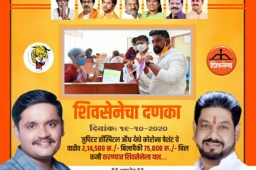 शिवसेना सदैव जनहितासाठी दिनांक 19/10/2020 रोजी जुपिटर हॉस्पिटल औंध येथे कोरोना पेशंट चे वाढीव 214508 बिलापैकी 75,000 रुपये बिल कमी करण्यात श्री. धनंजय भाऊ आल्हाट यांच्या नेत्तृत्वाखाली शिवसेनेला यश.. आपलेच श्री. धनंजय भाऊ आल्हाट (मा. नगरसेवक, शिवसेना विधानसभाप्रमुख) अॅड. कुणाल किसनराव महाराज तापकीर (युवासेना उपजिल्हाधिकारी)