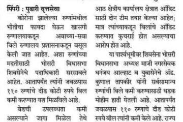 जुपिटर हॉस्पिटल औंध येथे कोरोना पेशंट चे वाढीव 214508 बिलापैकी 75,000 रुपये बिल कमी केले