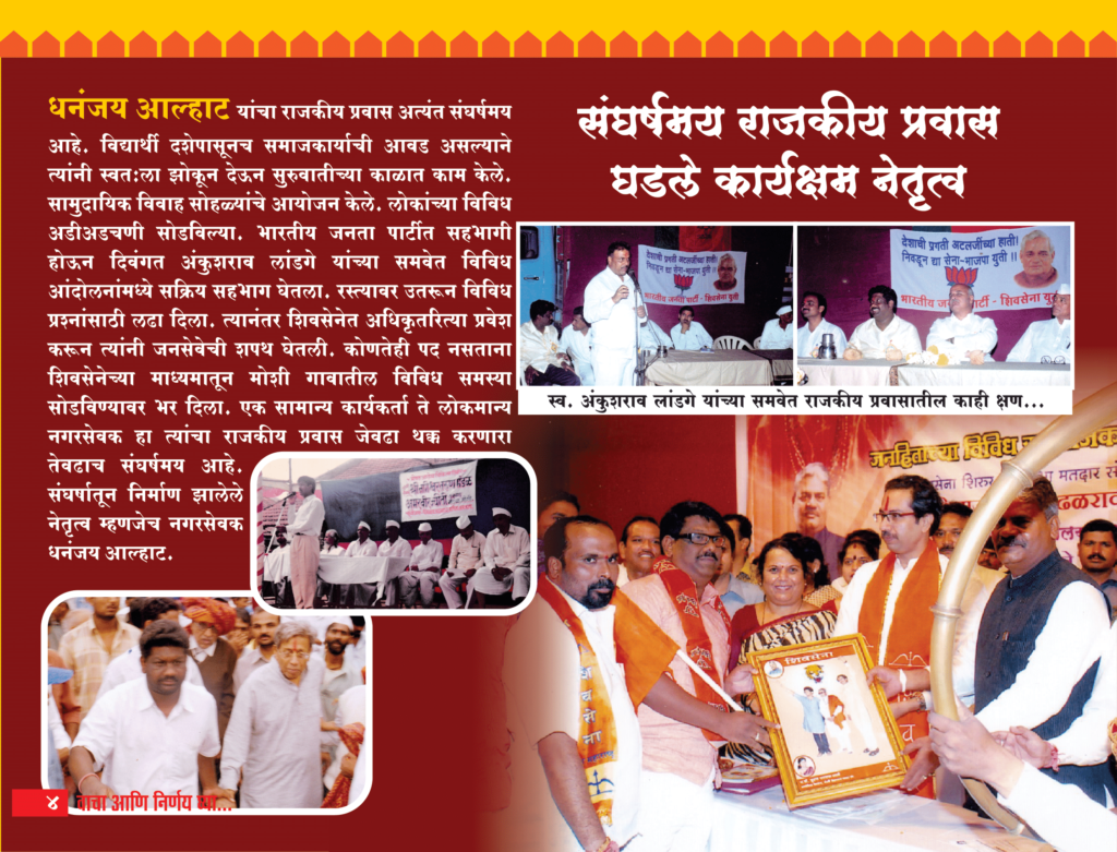 - स्व. अंकुशराव लांडगे यांच्या नेतृत्वाखाली नागरी सुविधांकरिता अनेकवेळा महापालिकेवर जनमोर्चा कावला सौ. सुलभा उबाळे यांच्या नेतृत्वाखाली प्रभागातील समस्यांबाबत नागरिकांचा मोर्चा काढला.